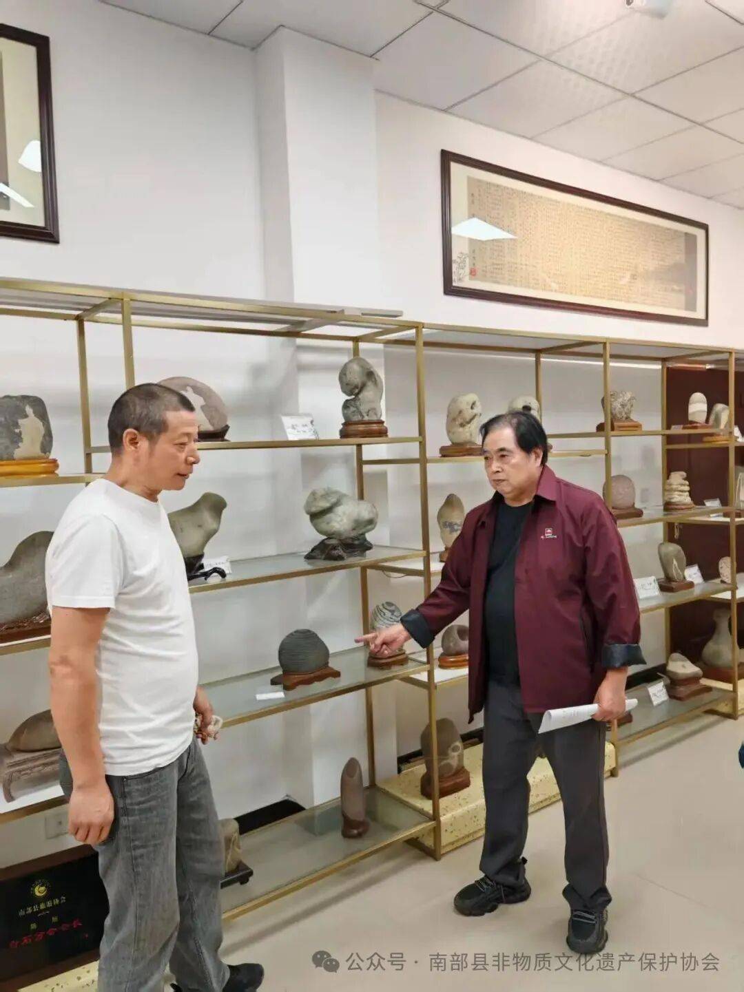 2025年10月6日,中秋佳节之际,广元市奇石协会名誉会长叶国祥、副会长戚怀全等一行,来到南部春风十里景区调研嘉陵江奇石观赏馆。他们的到来受到了春风十里景区董事长冉德华、南部县文化旅游协会秘书长冉茂生、南部县非物质文化遗产传承项目陵江奇石协会顾问魏国安、会长陈旭、执行会长杨北辰、南部县非物质文化遗产保护协会会长陈仕福、监事长贾德刚等人的热情接待。